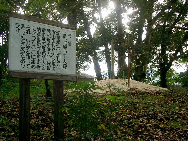 県立林業試験場の裏手に土壇がある。元亀元年(1570)今山の戦で大友軍の戦死者千余人、佐賀 軍の戦死者百余人を納富但島守の手の者によってここに集められ、小塚を造って葬った。