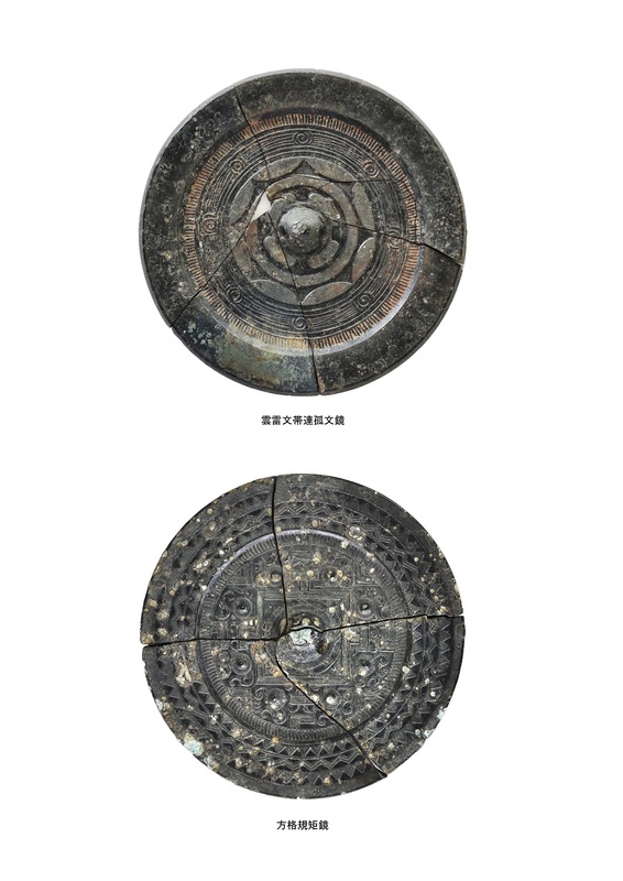 「方格規矩鏡(ほうかくきくきょう)(1面)、ガラス小玉(1800点以上)、碧玉製管玉(1点)、SJ7026甕棺墓棺体(1対)」