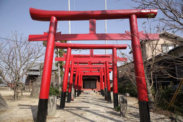 市道、上恒安〜永里線から西へ永里集落に入ると、曲がり角の一角に朱塗りの鳥居と2つのお堂がある。朱塗りのお堂(東側)は、森正一位稲荷大明神で、京都の伏見稲荷の分霊を祀ってあると言われている。 西側のお堂は新しいが、集落の人は薬師様と呼んでいる。 この2つのお堂の前に、石仏が6体お祀りしてある。