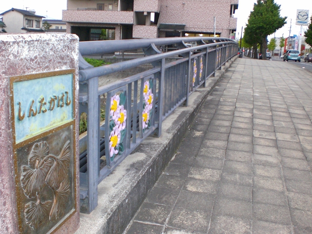 高橋の南100mに架かる橋。現在の橋は平成元年10月に改修架設された。