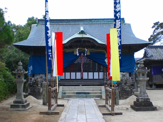 諌早神・温泉神・支々岐神・千々岩神の四柱の神を主神とし、天照皇大神他三十社の分霊が合祀されている。創始の年代は不詳だが平胤貞(たねさだ)が建久3年(1192)に再建したとの記録がある。国道207号線の旧道沿いの一の鳥居は鍋島二代藩主、光茂と鍋島藩5名の家老の寄進で、二の鳥居は寛永11年鍋島初代藩主勝茂の寄進によるものである。また明治維新まで鍋島家より祭費として毎年米五石が寄進されており、海の守護神として尊崇されていた。神殿の建築様式や、大規模な参道からみて、嘉瀬津が佐嘉地方の海上交通の要港として栄えていたことがうかがえる。