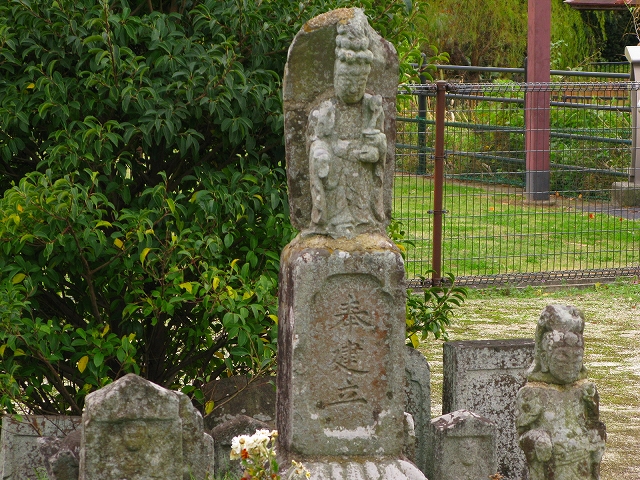 旧西与賀小学校の裏で、十三仏橋の傍にある。古老によればこの橋の名前の由来は十三仏が祀られていることからだという。ここには種々の石祠が祀られているが、ひときわ目立つのが宝冠に化仏を頂く十一面観音像である。像容は全体として完構を保っており江戸後期における彫造様式を今にとどめている。