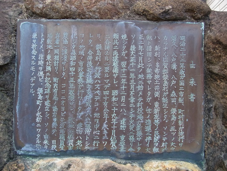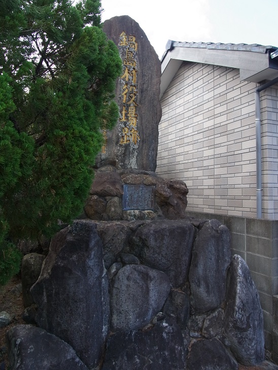 明治22年の市町村制に伴って村制施行の庁舎が必要となり、大正2年に当地に建設された。昭和29年佐賀市と合併するまで、35年間、同敷地内に農会(後産業組合後農協)、養蚕組合など鍋島村の重要施設が有った。合併後は支所、出張所、連絡所などを経て、取り壊され土地は民間に払下げとなり、現在角地に記念碑が設置されている。