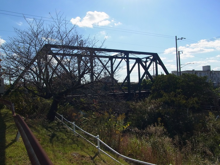多布施川にかかる鉄橋である。 鳥栖〜佐賀間は明治24年(1891)開通。平成3年が百周年記念。佐賀〜武雄間は明治28年 (1895)の開通。 鉄道南方の左岸に井樋があり、右岸は、天祐寺川に流れる可動式井樋がある。緑小路に多布施川の松並木を背景にした県立佐賀農学校があったが、大正11年(1922)杵島郡の白石に移転した。