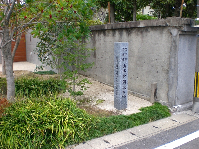 中の橋小路、水ヶ江大通り、角の野田金物店から東に入って4軒目、戦前、県立病院臼井鉄治院長が開業していた臼井病院跡地に「葉隠口述者山本常朝誕生地」の石の標柱が立っている。
