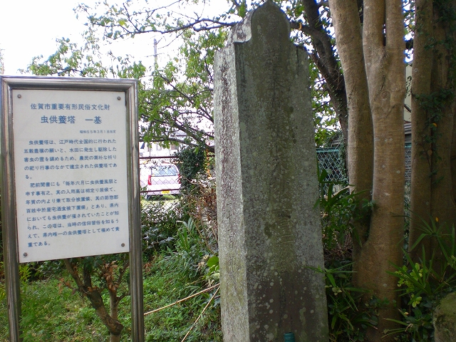 『肥前聞書』に「毎年六月に虫供養風祭と申す事有之、其の入用高は相定り居候て、年貢の内より兼て取分被置候、其の節惣郡百姓中於屋宅酒食被下置候」とあり、県内においても虫供養が催されていたことが知られる。