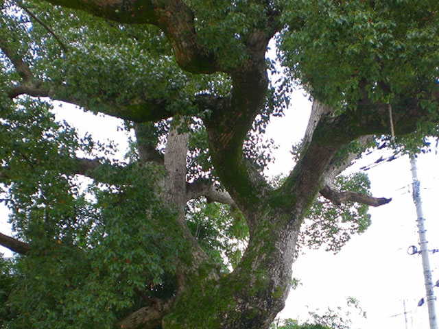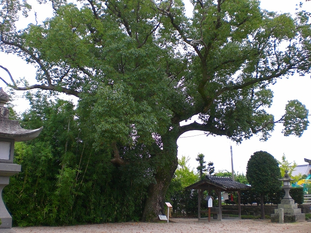 境内の南東隅にあり、胸高直径1.25m、高さ12m。枝張りは南北19.5m、東西18mの巨木である。県の指定巨木で樹勢は極めて良好。幹にはコケ類やノキシノブが着生している。境内にはこの巨木の他に3本のクスノキが生育している。