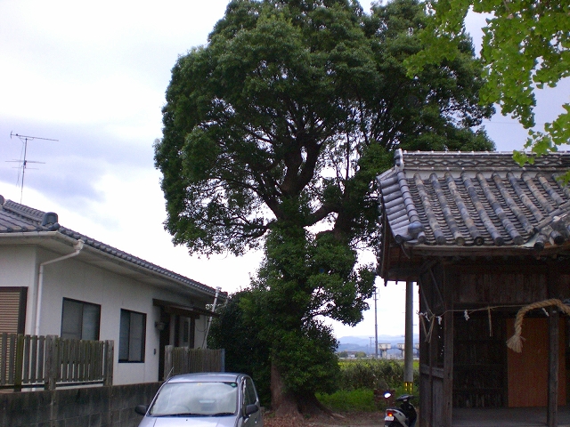 2本あるうち、社殿の東のクスノキは、胸高直径1.15m、高さ10m。社殿の北西のクスノキは、胸高直径1.35m、高さ8m。枝は剪定されているが生育状態は良好。 国道近くにもう1本あったが、道路拡幅のため平成15年に伐採された。