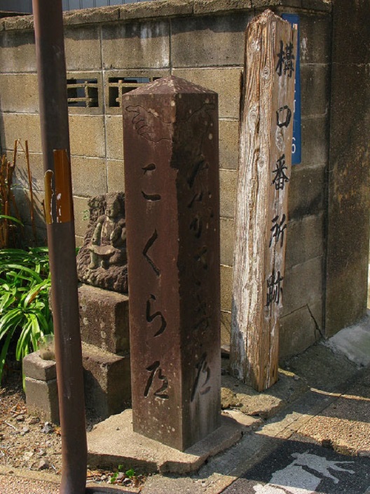 藩政時代、佐賀の城下にはいる東の入り口で、ここの橋を渡って城下に入る要所で、それにちなんで構口という地名になったと言われています。橋を渡った西側に番所があって武士が詰めていて、城下に入る通行人を監視していました。ここには、「番所跡」の標柱と、「ながさきへ」「こくらへ」と刻まれた石の道標があります。