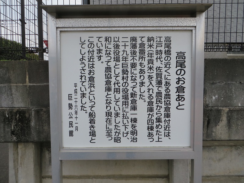 このように、長崎街道と巨勢川の交差点で恵まれた場所で、高尾宿公民館付近は佐賀藩の年貢米の倉庫があって、ここをお倉浜といって「津出し浜だし」といい、高尾津より米の積出しが行われ、牛島宿には、「高尾市場」と呼ばれる農作物の市が開かれ、物資の集散地として栄えた。