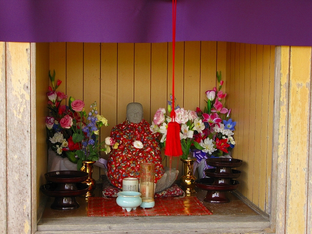 上飯盛の常照院の東に正里から中野實翁生誕地へ通ずる道路寄りに、大きな楠が空をついている。その根本に「木起こし地蔵さん」が小屋に鎮座されている。