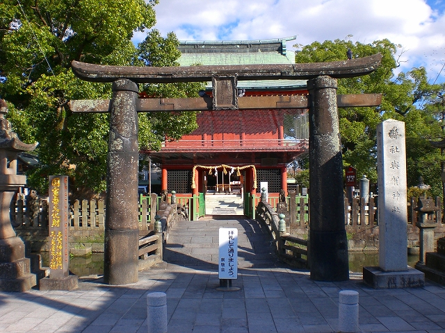 当社の参道は八丁馬場(与賀馬場)といわれ、千数百メートルの間に3基の石造りの肥前鳥居がある(国重文)。