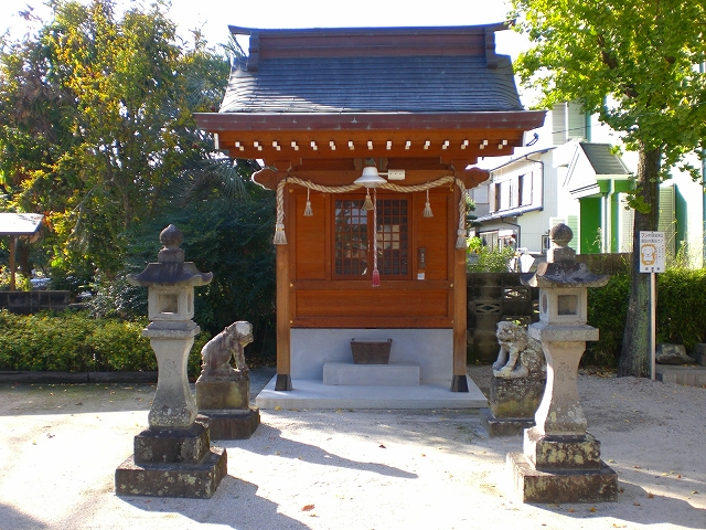 (龍造寺剛忠公の長男家純公、水ヶ江城鎮守として)今日、倒壊の危険もあったため、平成17年12月町区民の浄財により神社南側に新しく築かれる。