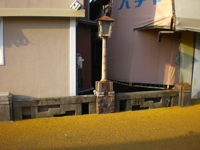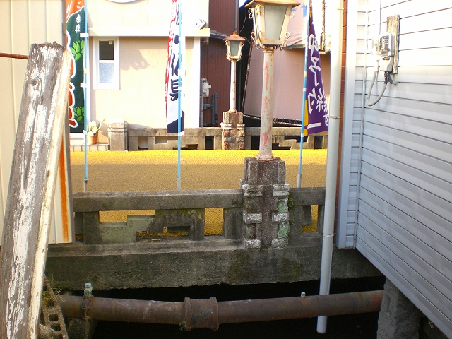 元呉服町と蓮池町の境で『錦通り』とも一時呼んでいたところで、光明寺の前にある橋がいわゆる『晒橋』である。この橋は、大財町副島病院南の大財橋より少し西より、願正寺の東を南に流れて、愛宕神社東を通り、晒橋から裏十間川に入る『呉服町水路』に架かる橋で、橋の欄干には往時を偲ぶガス灯が設置され復元されたのである。現在の橋になる(昭和の初期)前は、松原神社の石橋を小さくしたような形の石の太鼓橋であった。現在の橋に架け替えられた時に、県内で初めてアスファルト舗装道となって、市営バス(マイクロ)がとおった。また、橋の北側には「たなじ」があって、小さな川舟がつくこともあったし、その側に人力車の立場があった。(龍ヶ江弘誓氏談)この橋の由来は、昔ここのところに罪人を縛り、罪状を記した木札を吊し、この橋を通る人達に見せしめのため終日晒したことによると云う説と、この横の50m位上流で窓の梅の東が、かつて今宿からの最終船着き場となっていたことから、この川で布を晒したとの一説もあるが、南北の呉服町水路は『真宗堀』とも呼ばれる人工堀のため後者の説は薄いようである。このような罪人の晒場所は、ここのほか唐人町の土橋や本庄町井樋の上辺にあったらしく、また、この通りは昔構口から佐賀城下を通る長崎街道筋に当たり、この橋の西北に『本陣』の屋敷跡があった。『本陣』の屋敷があったすぐ側であるため、打ち首の晒し場所であったとは考えられないようで、今の軽犯罪者の晒しであったようである。かつてこの町は蓮池町と呼ばれていたが、その後千代町に変わり、現在ではこの橋の西側を呉服元町に、東を柳町に町名が改正され昔より有名だった蓮池町の名前は完全に消えていった。この蓮池町一帯は昔々数軒の算盤屋があって繁盛し、遠く関西方面にも取引きがあったということである。この橋から上流400m位の川を『新堀』とか『真宗堀』とかで呼ばれて、また、愛宕神社東の通りの路地を『新堀端』ともいわれ、佐賀藩と願正寺との深い関わりのあるところでもある。また、橋の側の光明寺第12代住職龍ケ江良俊師は、あの佐賀で有名な唄の『梅干し』の作詞者である。